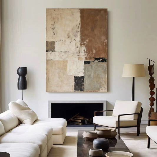 Wall Art Decor: Hand-Painted Wabi-Sabi Oil Painting for Modern Spaces
