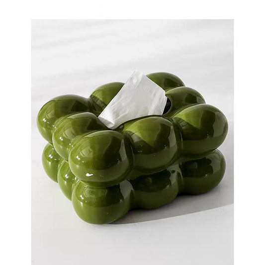 Luxury Velvet & Ceramic Tissue Box – Minimalist Desktop Decor