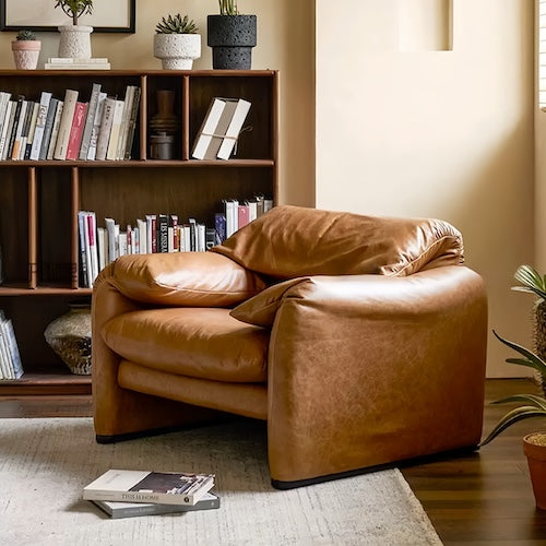 Réplique de fauteuil en cuir Maralunga, conçu par Vico Magistretti pour Cassina